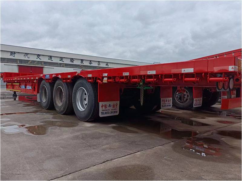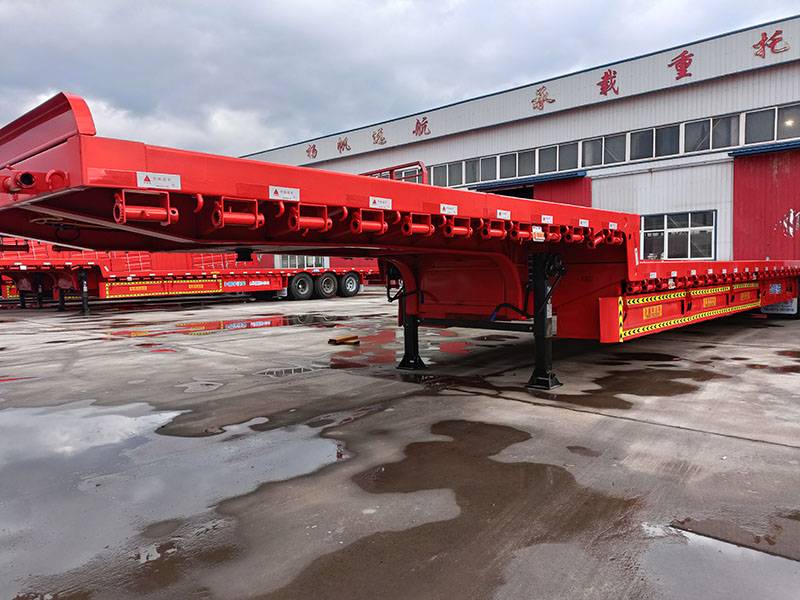 The standard width of the 17.5-meter-long low flatbed semi-trailer is 3.0 meters, with a height of 1.25 meters. It has a sloping structure and the rear platform is 14 meters long with a height of 1.25 meters and 1.5 meters in height. Including the cab, the total length is approximately 21 meters. The load capacity is approved to be 35 tons.