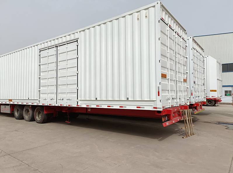 The box-type semi-trailer is modified or manufactured on the chassis of a box-type vehicle. Depending on the type of its cabin, it can be classified as a passenger cabin type or a cargo cabin type. The cabin of the passenger cabin type is generally of an integrated structure with the driver's cab, such as ambulances, accommodation vehicles, environmental inspection vehicles, dining cars, and television transmission vehicles, etc. The cabin of the cargo cabin type is generally of a separate structure from the driver's cab, such as box-type freight transport vehicles, refrigerated and insulated vehicles, etc.